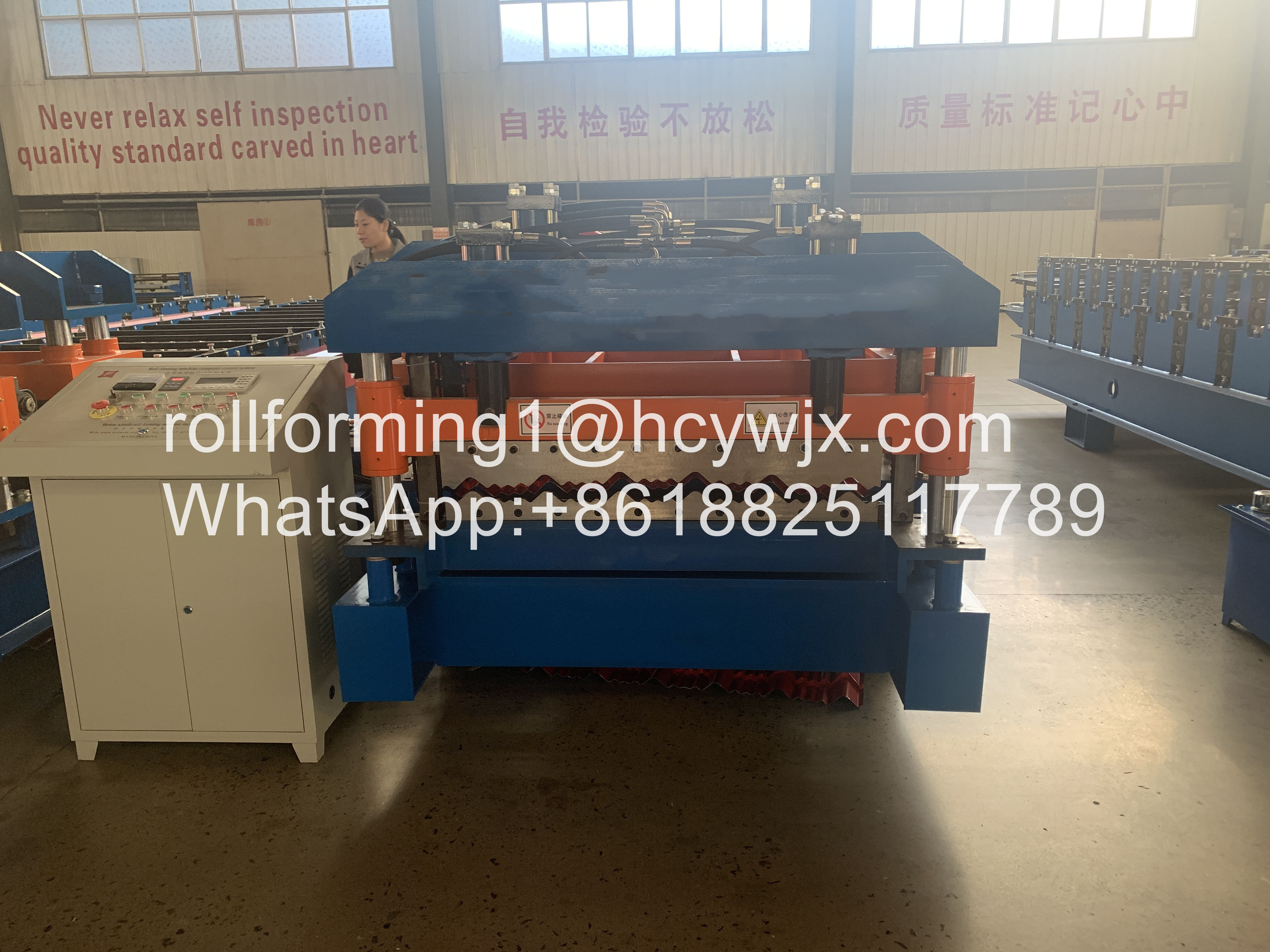 이 고속도 유럽 표준 몬테레이 유약 기와 롤 성형기는 강철 시트에 연속 압연과 냉간 형성을 위한 특수 기기입니다. 연속 압연과 냉간 형성의 코일을 푼 원료가 자동적으로 사이즈에 잘리고 완료 패널을 출력할 때 그것은 코일링 강철 시트를 채택합니다. 장비는 PLC 통제, AC 진동수를 채택하고 속도 기술을 조정하면서, 그리고 그것이 실현되고 그 연속적이 자동적으로 생산, 그러므로, 정말로 그것은 에너지 절감의 신형이고 철골 구조물을 위한 고효율 생산하는 장비입니다.
